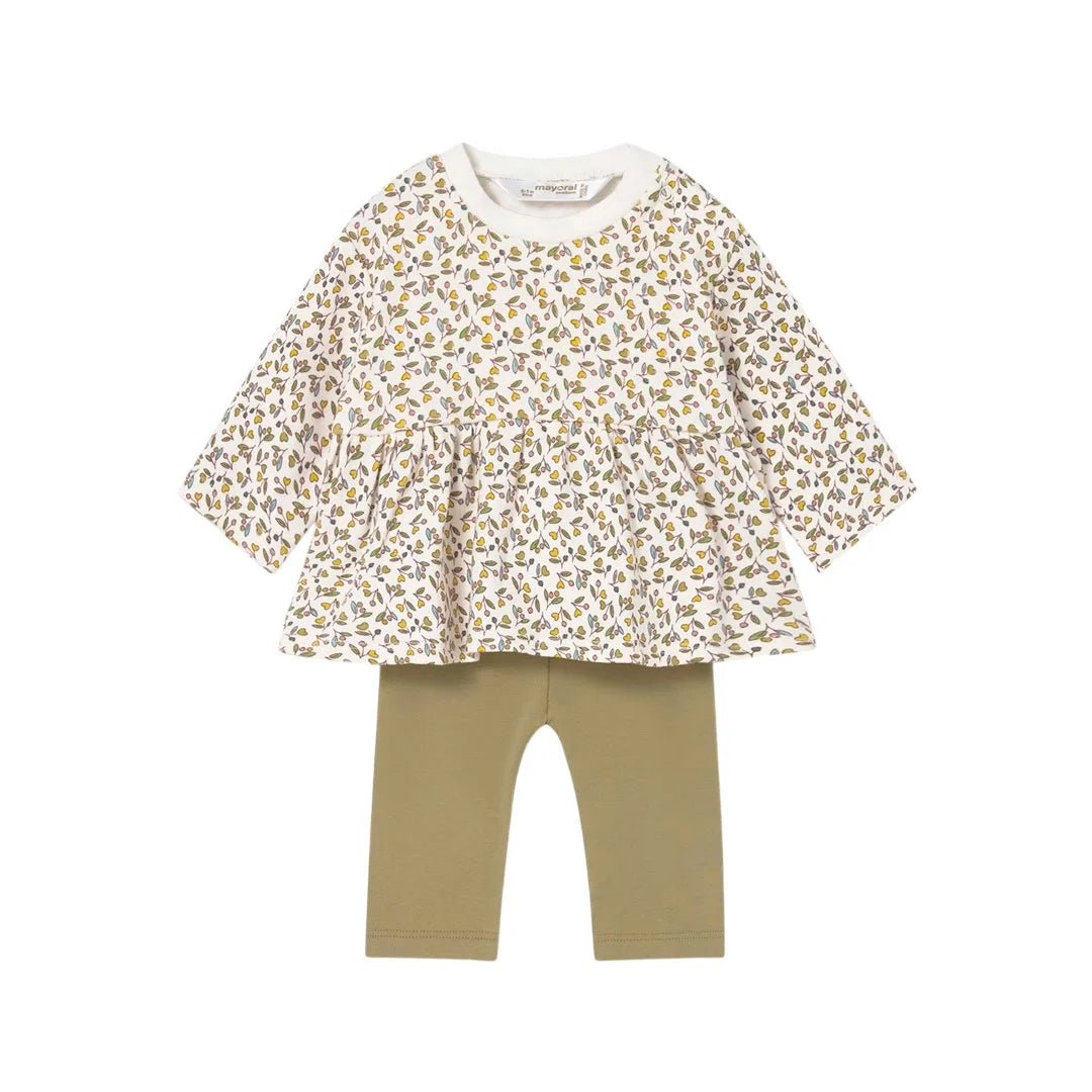 Conjunto 2pz de blusa con pantalon diseño estampado, cuello redondo, cierre con botones a presión en la parte posterior, pantalón tipo legging para recién nacida - Mayoral