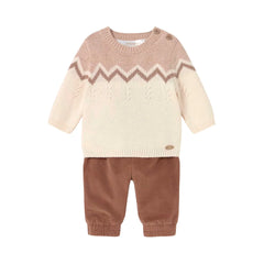 Conjunto con buzo tejido y pantalón café para bebé, jersey de manga larga, cuello redondo, botones en el hombro para facilitar la puesta, cinturilla elástica, bajo elástico para un mejor ajuste - Mayoral