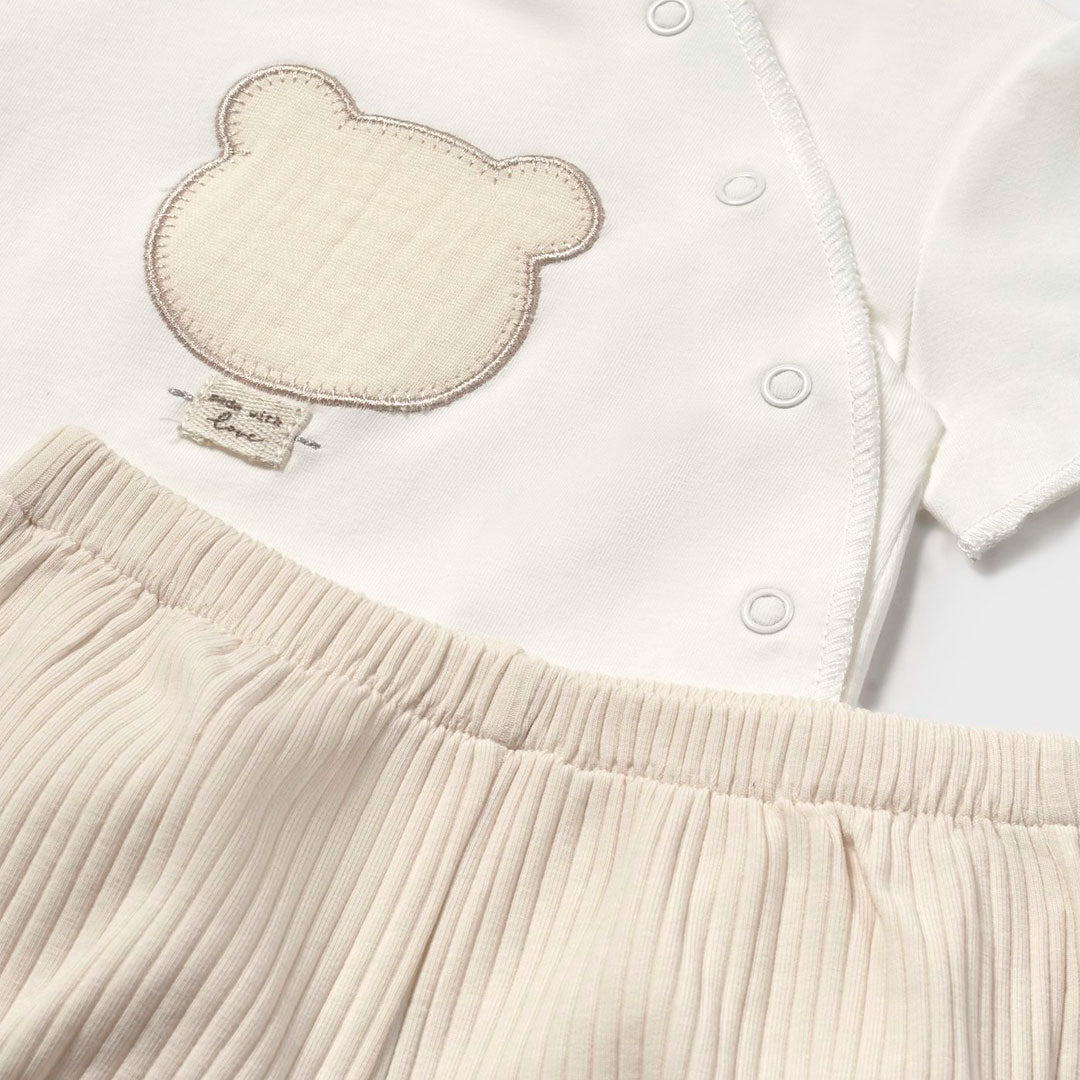 Conjunto de 2pz pantalón corto y camiseta osito, para recién nacida, camiseta de cierre por botones, pantalón con ajuste por resorte - Mayoral