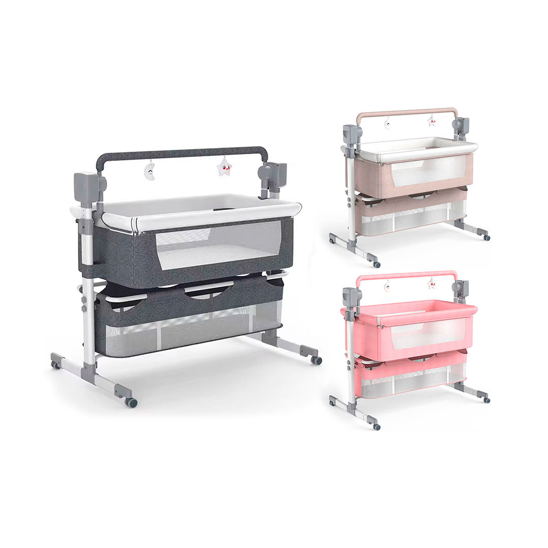 Cuna colecho mecedora para bebé eléctrica con niveles ajustables de altura, música, movimientos y canasta