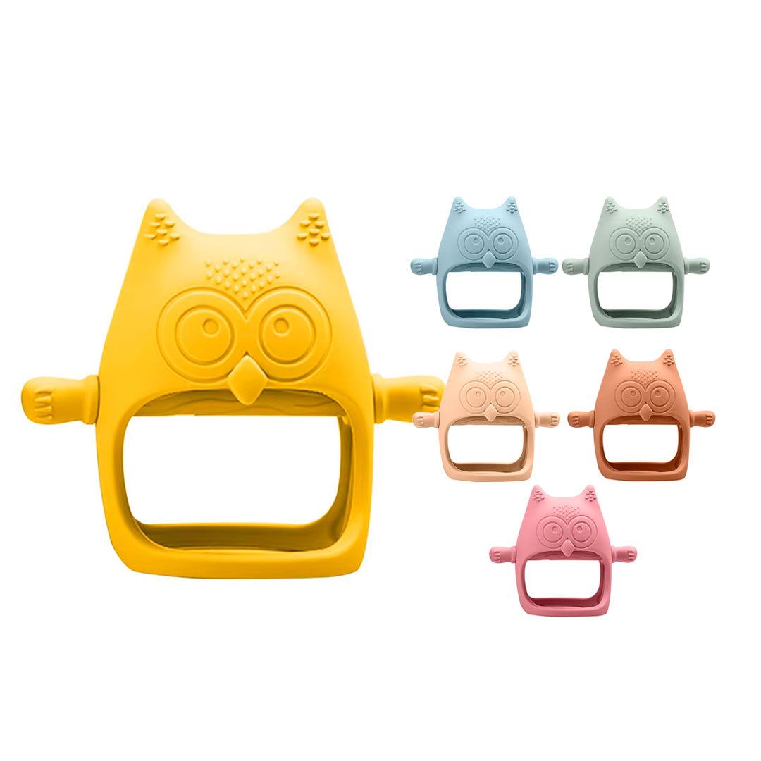 Mordedor rascaencias guante en forma de búho, juguete masticable hecho de silicona suave de grado alimenticio